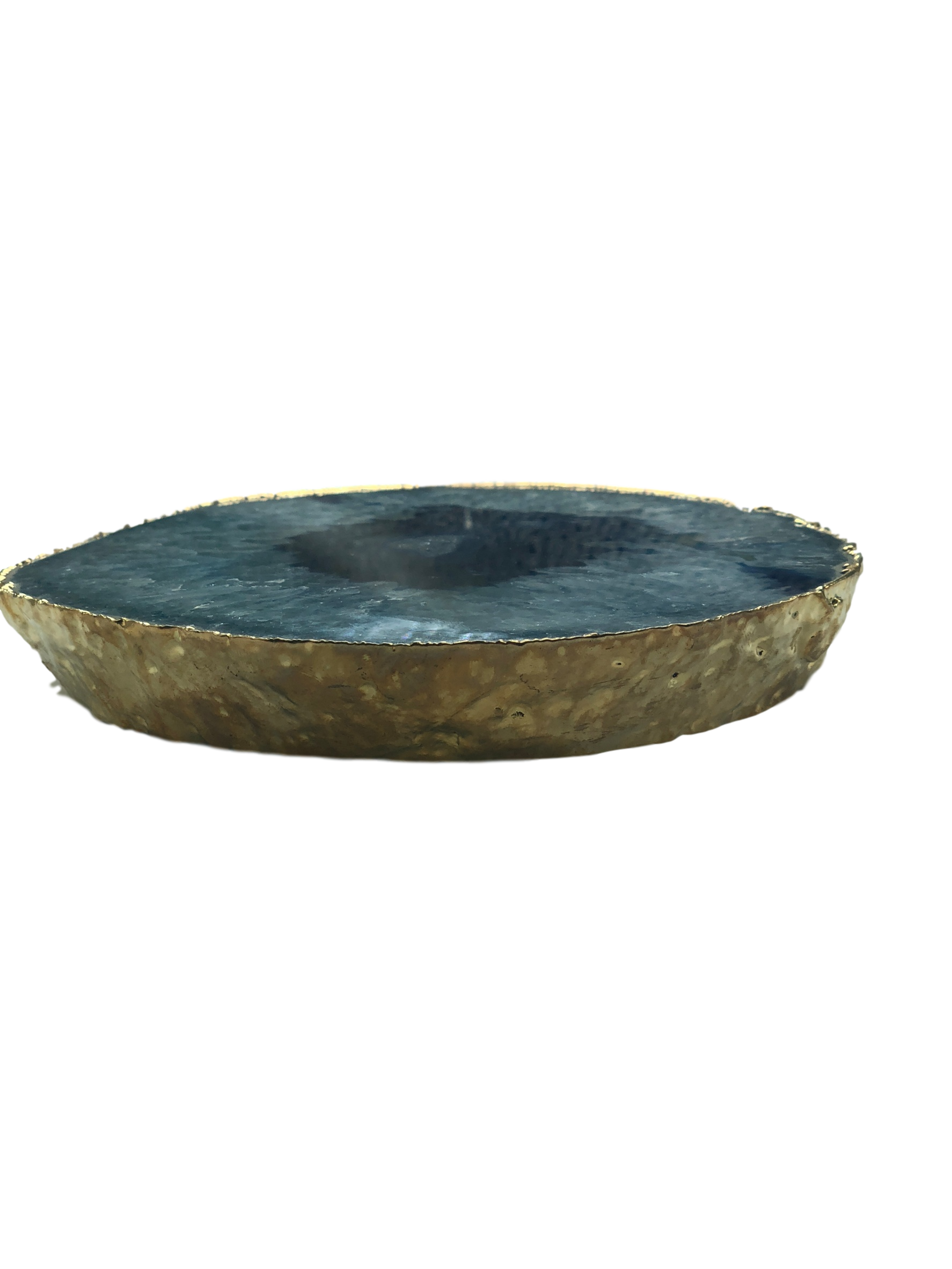 With even more room to entertain, the ¾-inch thick serving platter is 9” in diameter. This large agate platter is perfect for displaying your favorite desserts or crudité. The elaborate gold trim that surrounds the colorful agate serving plate adds a touch of elegance. Choose from oceanic or wintry blues, lovely lavender, and more to match with other tabletop decor.